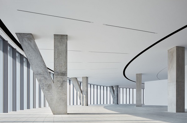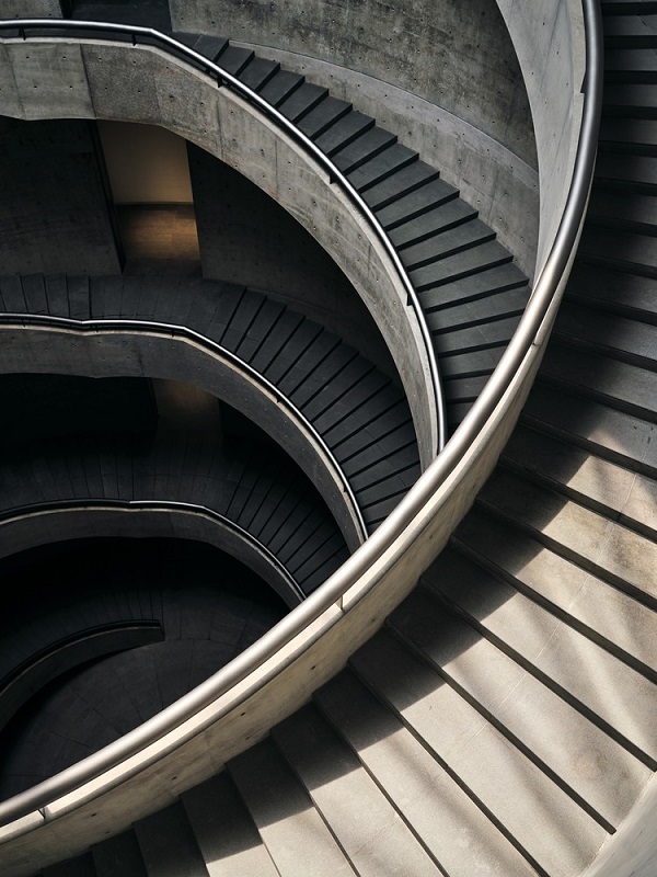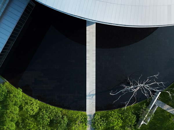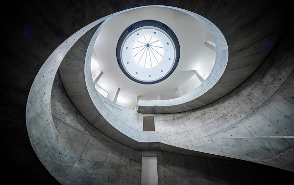 يمتلئ المشروع بالضوء الطبيعي المتدفق من “بئر السماء” المركزية إلى مساحات العرض ، ويولد ردهة بها سلالم حلزونية مزدوجة تعيد تفسير المبادئ المعمارية الصينية التقليدية المعاصرة. من خلال إنشاء مساحات عرض دائرية بشكل أساسي ، استوحى Ando الإلهام من أجنحة جانب الماء الموجودة في تراث Lingnan.