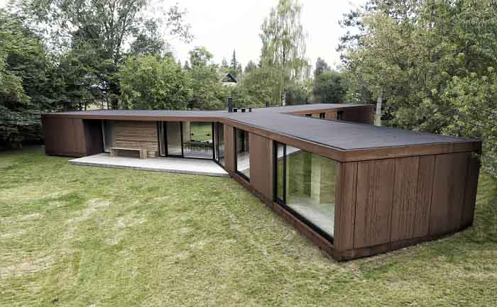 تم رفع المنزل في غضون ثلاثة أيام فقط بعد أن تم تصميم الألواح بعناية وتصنيعها آليًا من تنوب البلطيق FSC المستدام. أدت الوفورات على العمالة إلى أن هذا المنزل الخشبي الصلب تم بناؤه بتكلفة مماثلة لمنزل إطار خشبي تقليدي.
