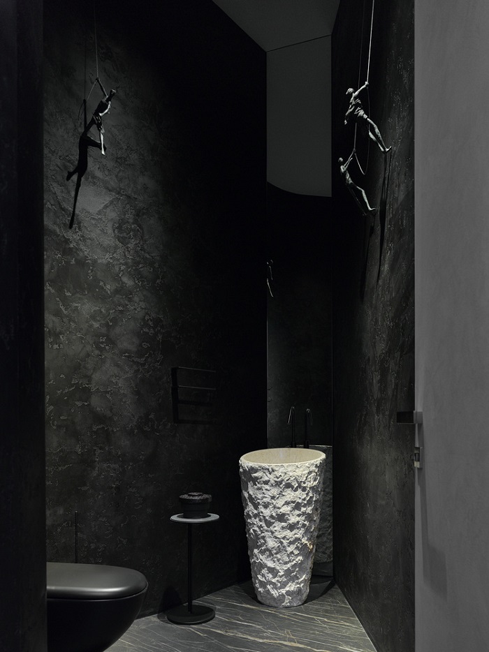 يتم تفسير كل قطعة من الأثاث كعمل فني، في حين تعمل التحف الفنية أيضا في عناصر المنطقة للمساحات السكنية وغير السكنية، وهي استشفاف اتجاه الحركة. “نوافذ بانورامية مصبوب لا تمنع التركيز من موقع على” التاريخ “الذي يحدث في المنزل ولا تولد حقل معماري واحد، والتي تشمل حلول المشهد الخارج، والداخلية،” شرح المهندسين المعماريين.