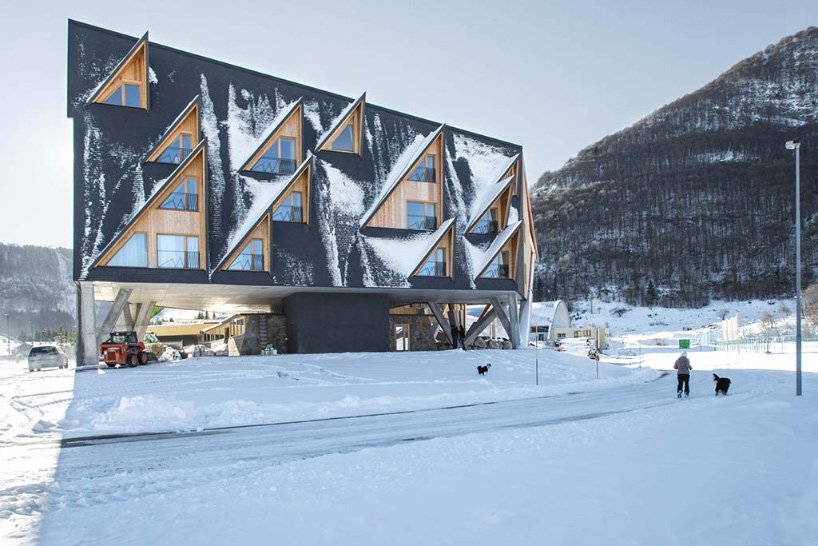 يقع هذا الفندق في منطقة piancavallo الجبلية ، وقد تم تصميمه لإلتقاط وعرض الثلج والجليد بشكل كبير. صممه المهندس المعماري الإيطالي ستيفانو بوجات ، “فندق 1301 نزل” يأخذ اسمه من ارتفاعه في بالضبط 1،301 متر (4،268 قدم) فوق مستوى سطح البحر. يقع الفندق في بلدة صغيرة تم تطويرها كوجهة شتوية في سبعينيات القرن العشرين. ونتيجة لذلك ، سعى المهندس المعماري لتصميم مشروع بدا امتدادًا للمناظر الطبيعية.