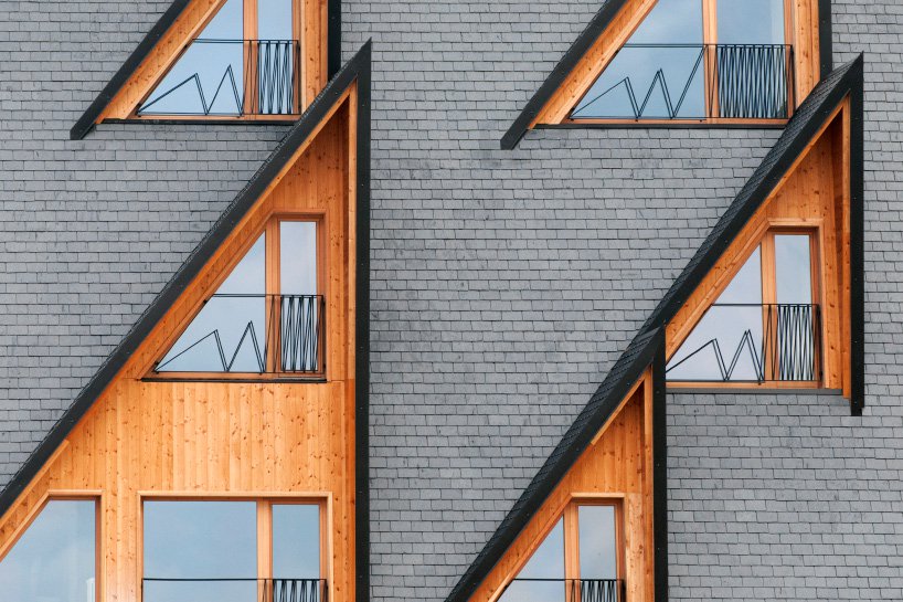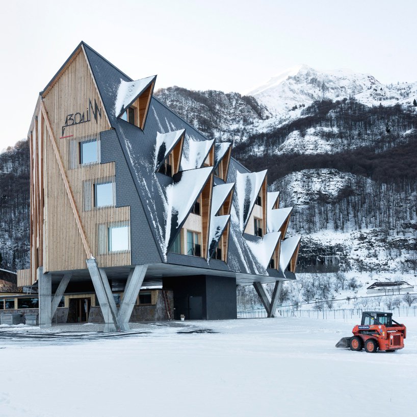 ربما أكثر ما يلفت النظر ، يتميز فندق 1301 inn بنوافذ ناتئة خشنة تشبه شكل قمم الجبال المحيطة. تم تصميم هذه الواجهة من قبل ستيفانو بوجاتي لالتقاط الثلج المتساقط ، والسماح للجليد بالتشكل والتعليق من مظلة السقف. الفندق ذو الـ 37 مفتاحًا مرتفع جزئيًا عن الأرض بواسطة الأعمدة. هذه اللفتة تثير الشعور بالتعليق في بيت الشجرة ، مع الضيوف الذين تمسكهم الفروع الكبيرة.