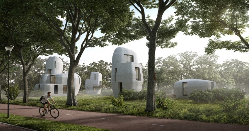 وسيكون المنزل الأول عبارة عن منزل من طابق واحد يتكون من ثلاث غرف بمساحة 1000 قدم مربع (95 متر مربع) ، يليه أربع وحدات متعددة الطوابق. يعتمد الشكل غير المنتظم للمباني على “القطع غير المنتظمة في المناظر الطبيعية الخضراء” ، مما يجعلها ممكنة بفضل مرونة الشكل المسموح به من خلال الطباعة ثلاثية الأبعاد.